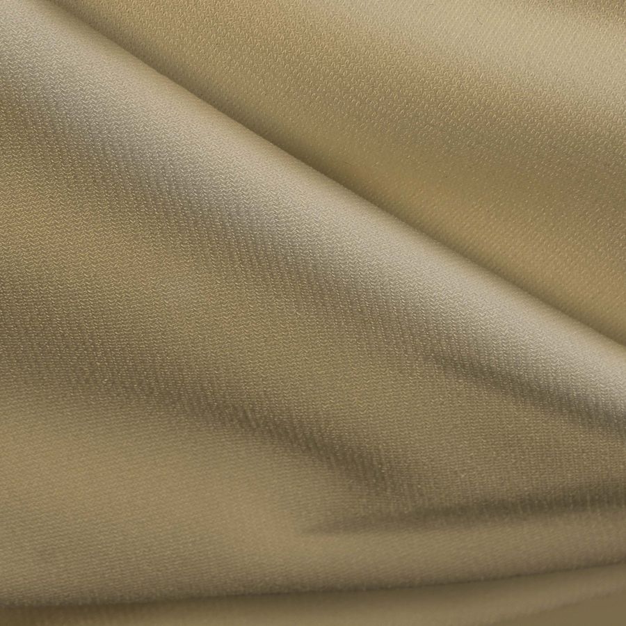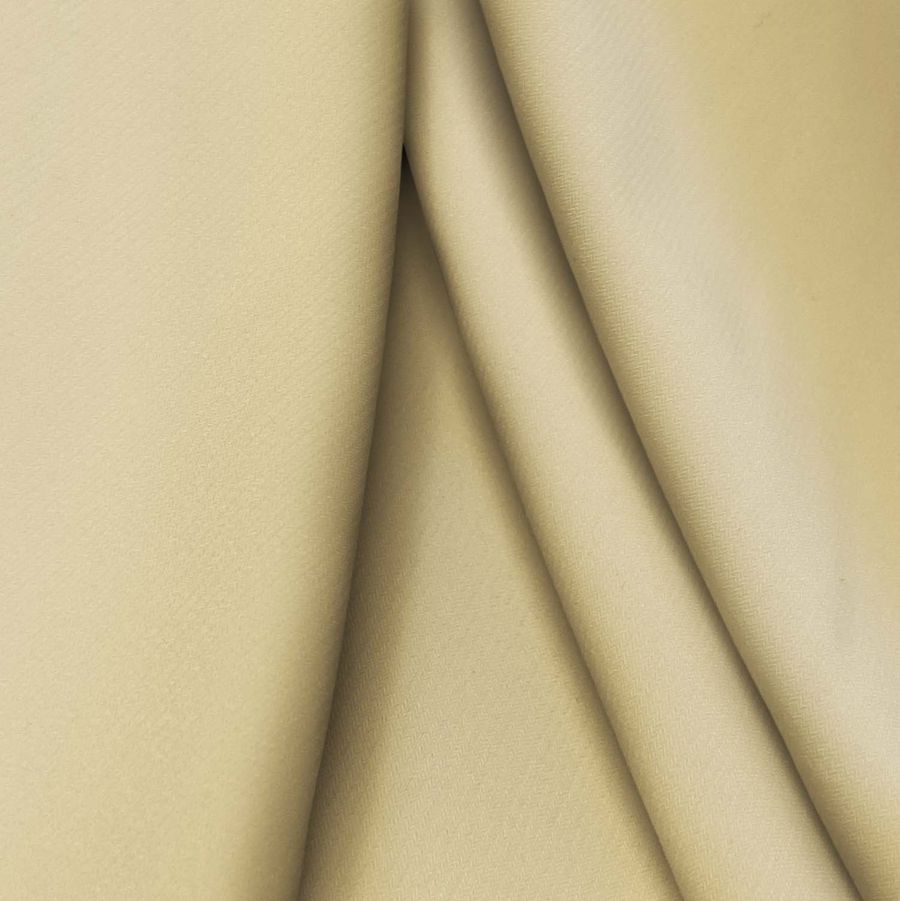 La tela base es el Punto Sintético con Spandex - Support, compuesta por un 95% de poliéster y un 5% de elastano, con un gramaje de 237 gr/m2 y un ancho de 152 cm. El color liso impreso es un Amarillo Arena con una CMYK de 14 22 51 2, lo que indica una tonalidad cálida y suave con un cierto grado de saturación y un bajo contraste. Es un color que se combina perfectamente con tonalidades neutras como el blanco o el gris y con otros tonos cálidos como los beiges o los marrones.