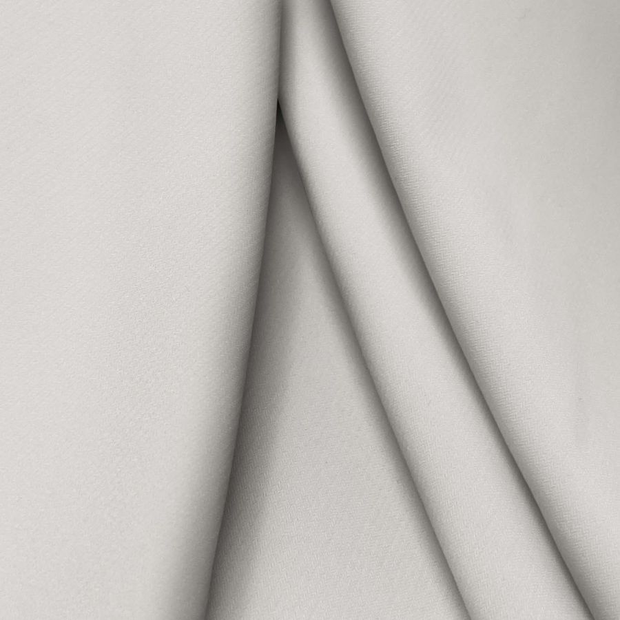La tela base es el Punto Sintético con Spandex - Support, una tela de punto que combina una composición de 95% POLIÉSTER y 5% ELASTANO, con un gramaje de 237 gr/m2 y un ancho de 152 cm. La tela tiene un tacto suave y elástico, es opaca visualmente y se imprime por sublimación. El color liso impreso es Gris Lobo Estepario, con una combinación de tinta cyan: 16, magenta: 14, yellow: 17 y black: 0, lo que nos da un CMYK de 16 14 17 0. Este color se podría describir como una versión oscura y cálida del gris.