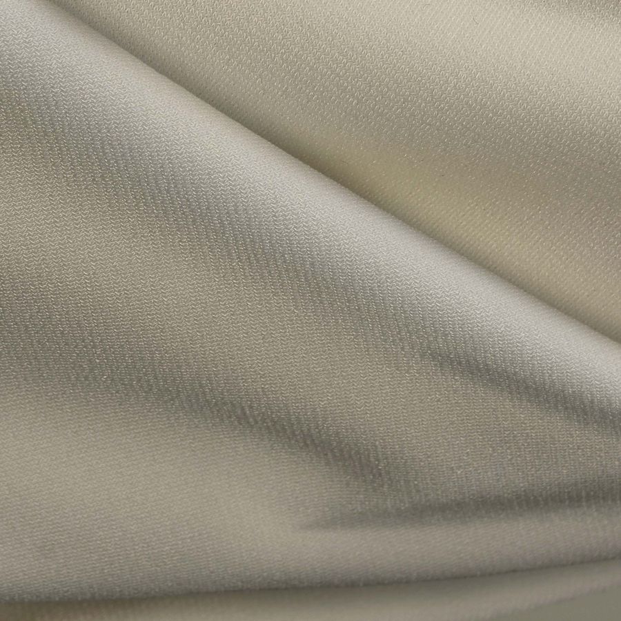 La tela base, conocida como Punto Sintético con Spandex - Support, tiene un gramaje de 237 gr/m2 y está compuesta por un 95% de poliéster y un 5% de elastano. Su ancho es de 152 cm y su cuidado requiere una temperatura máxima de 30ºC, no blanquear, no planchar a temperaturas altas por su reverso, y no usar secadora. El color liso impreso en esta tela se compone de un 10% de tinta cian, un 10% de tinta magenta y un 27% de tinta amarilla, reflejado en el contenido del CMYK, y se presenta en una combinación de colores blanco y arena.
