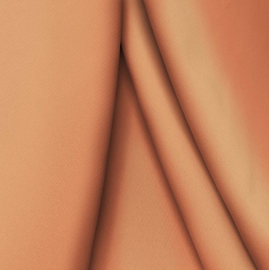 La tela base es el Punto Sintético con Spandex - Support, una Tela de Punto compuesta por un 95% de POLIÉSTER y un 5% de ELASTANO con un gramaje de 237 gr/m2 y un ancho de 152 cm. El color liso impreso en la tela es Naranja Cinabrio, con un CMYK de 8-61-65-1. Este color es una combinación vibrante de naranja y rojo, que transmite energía y vitalidad. Combina especialmente bien con tonos verdes y azules.