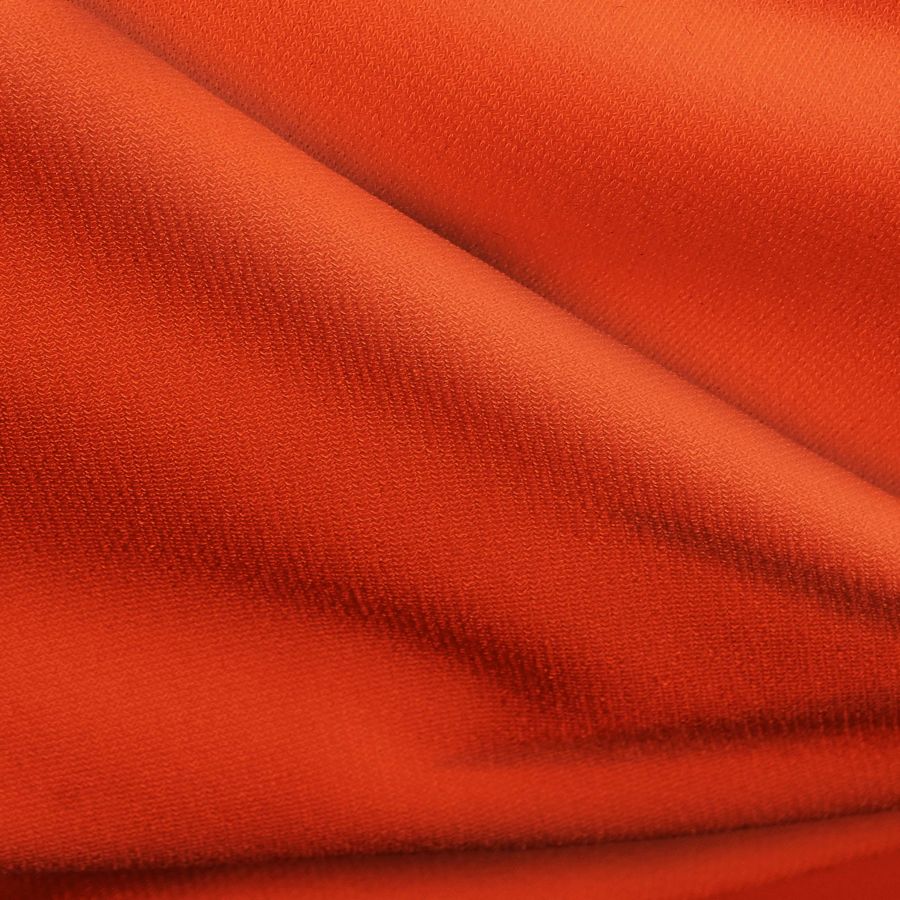 La tela base es el Punto Sintético con Spandex - Support, con una composición del 95% de poliéster y un 5 % de elastano. El color liso impreso es un rojo bermellón con un CMYK de 0 91 100 0. Este color presenta un matiz intenso y vibrante debido a su alto contenido en magenta y amarillo, lo que le confiere un carácter fuerte y atractivo. Asimismo, este color combina especialmente bien con tonalidades neutras como el blanco, el negro o el gris.