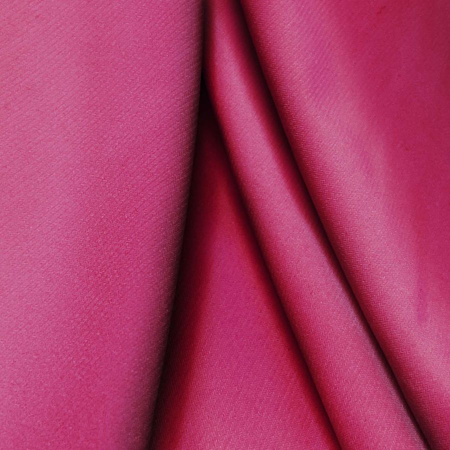 La tela base es el Punto Sintético con Spandex - Support, compuesta por un 95% de poliéster y un 5% de elastano, con un gramaje de 237 gr/m2 y un ancho de tela de 152 cm. Tiene un tacto suave y elástico, opaco visualmente y combina perfectamente con los colores blanco, negro y gris, entre otros. El color liso impreso es un rojo intenso y brillante, con una proporción de tinta Cyan del 27%, una Magenta del 97%, una Yellow del 34% y una Black del 20%, lo que da un CMYK de 27 97 34 20. Este color secundario combina bien con el azul oscuro, el rosa claro y el marrón. Se debe considerar que el tejido está impreso con el color liso por una sola cara por impresión digital textil, lo que no afecta la calidad del tejido.