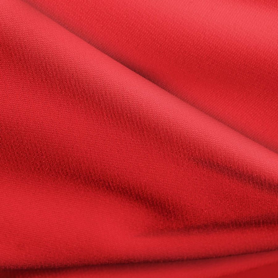 La tela base, Punto Sintético con Spandex - Support, tiene una composición del 95% poliéster y 5% elastano, con un gramaje de 237 gr/m2 y ancho de 152 cm. El color liso impreso es un rojo pigmento con un CMYK de 0 95 85 0, lo que indica una alta presencia de magenta y amarillo, asegurando un tono intenso y vibrante. Este color secundario es normalmente combinado con tonos neutros como el blanco y negro, así como con una gama de rojos y rosados para crear una paleta de colores cohesiva.
