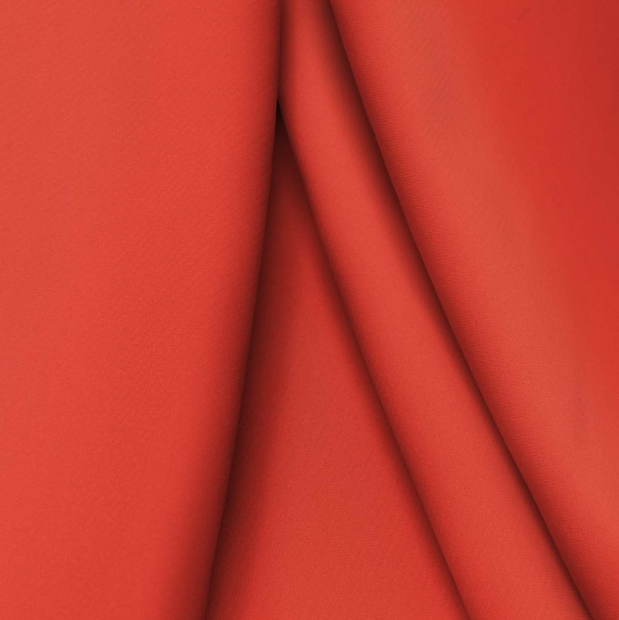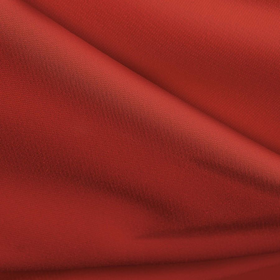 La tela base, Punto Sintético con Spandex - Support, es una tela de punto compuesta por 95% poliéster y 5% elastano, con un gramaje de 237 gr/m2 y un ancho de 152 cm. El color liso impreso es de un rojo intenso, con un CMYK de 5 87 82 0 y nombre Rojo,rojo CG. Además de la textura suave y elástica característica de la tela base, destaca su opacidad y su capacidad para adaptarse al cuerpo.