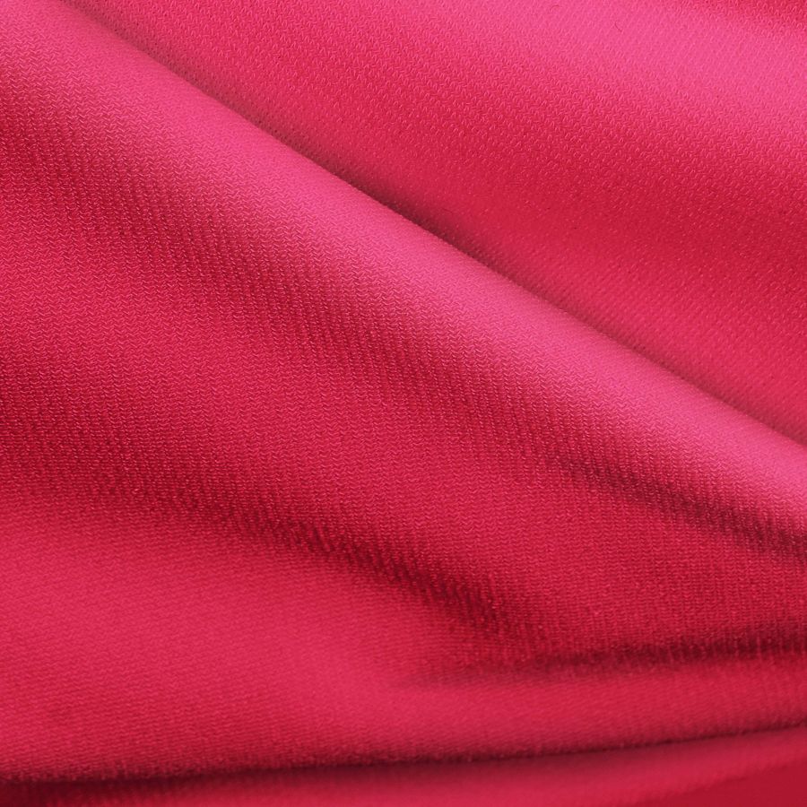 La tela base de esta prenda es Punto Sintético con Spandex - Support de 95% poliéster y 5% elastano, con un gramaje de 237 gr/m2, un ancho de 152 cm y una textura suave, visual opaca y elástica. El color liso impreso en esta tela es Rojo Crayola con un CMYK de 0 94 56 0, lo que le da un tono rojo intenso y vibrante, que combina especialmente bien con tonos terrosos y neutros. Es importante mencionar que la tela está impresa a una sola cara por impresión digital textil.