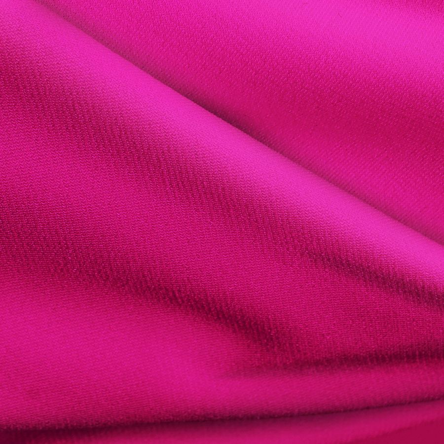 La tela base es el Punto Sintético con Spandex - Support, con una composición del 95% de poliéster y el 5% de elastano, un gramaje de 237 gr/m2 y un ancho de 152 cm. El color liso impreso es un vibrante rojo púrpura con un CMYK de 2 98 10 0. Este color es intenso y vibrante, haciendo que la tela se destaque y llame la atención. Combinado con tonos más claros o más oscuros, como el blanco o el negro, crea un contraste que resalta la intensidad del color.