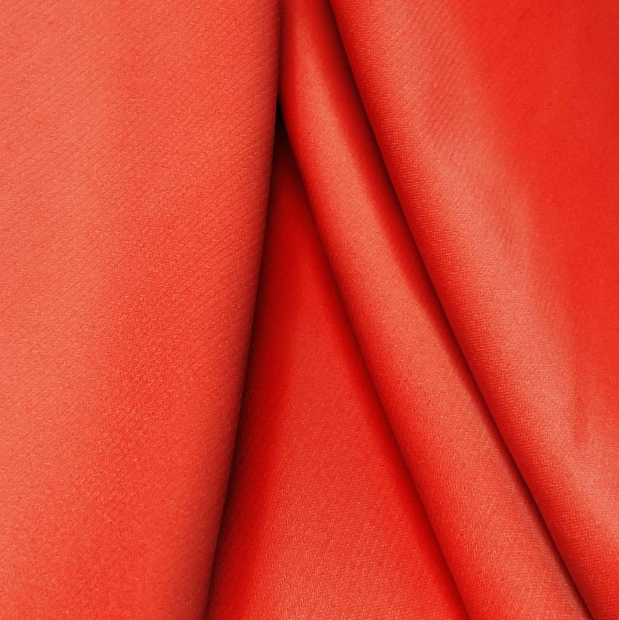 La tela base es el Punto Sintético con Spandex - Support, de composición 95% poliéster y 5% elastano, con un gramaje de 237 gr/m2 y un ancho de 152 cm. Su color liso impreso es rojo ryb con un valor CMYK de 0 89 89 0. Este color combina especialmente bien con tonalidades marrones, verdes y azules.