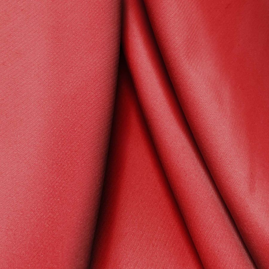 La tela base es el Punto Sintético con Spandex - Support, compuesta por un 95% de poliéster y un 5% de elastano, con un gramaje de 237 gr/m2 y un ancho de 152 cm. El color liso impreso es de un rojo intenso, Upsdell, con un CMYK de 22 97 83 15. Este color secundario se caracteriza por ser vibrante y tener una tonalidad cálida y sensual. Combina muy bien con tonos neutros como el blanco y negro, pero también con colores complementarios como el verde y el azul.