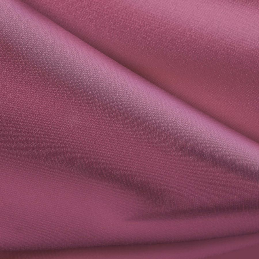 La tela base de este tejido es el Punto Sintético con Spandex - Support, compuesta principalmente por 95% de poliéster y 5% de elastano, lo que le proporciona una gran elasticidad y comodidad al tacto. El gramaje de la tela es de 237 gramos por metro cuadrado, con un ancho de 152 cm. El color liso impreso en la tela tiene un CMYK de 11 68 20 0, es decir, un rojo con tintes violeta pálido.