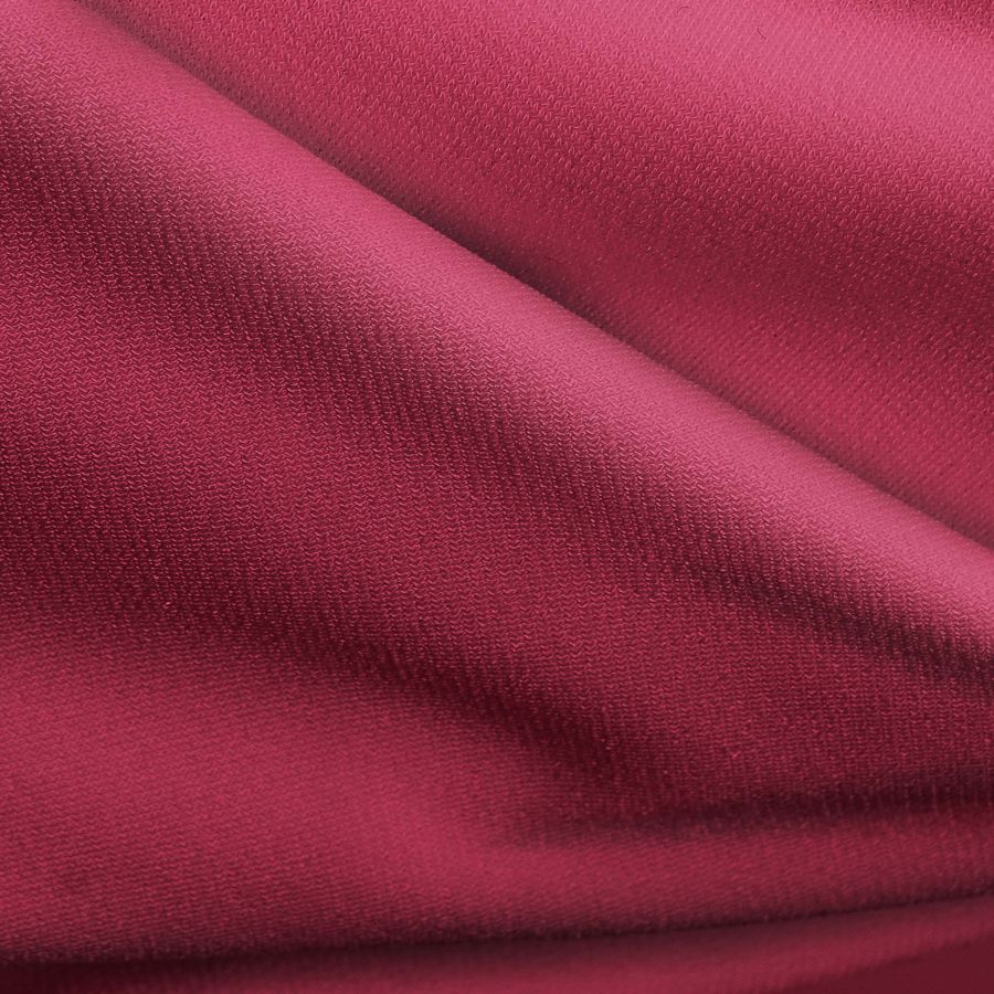 La tela base, conocida como Punto Sintético con Spandex - Support, está compuesta por un 95% de poliéster y un 5% de elastano, lo que la hace elástica y cómoda de vestir. Su gramaje es de 237 gr/m2 y su ancho de 152 cm. El color liso impreso sobre esta tela es el Rojo Ruby big dip, que está formado por las tintas Cyan (26), Magenta (95), Yellow (55) y Black (24), en un CMYK de 26 95 55 24. Se trata de un color intenso, con fuerte presencia del magenta y amarillo, transmitiendo pasión y vitalidad. Combina especialmente bien con tonalidades neutras como el negro o el blanco.