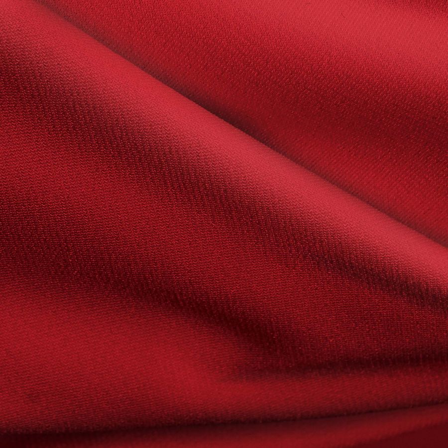 La tela base, Punto Sintético con Spandex - Support, tiene una composición de 95% poliéster y 5% elastano, con un gramaje de 237 gr/m2 y una anchura de 152 cm. El color liso impreso es de un intenso rojo sangría con un CMYK de 26 100 100 30. La tinta cyan es baja, lo que explica la intensidad de su color rojo oscuro. Este color secundario resulta perfecto para combinar con verdes oliva y azules petróleo.