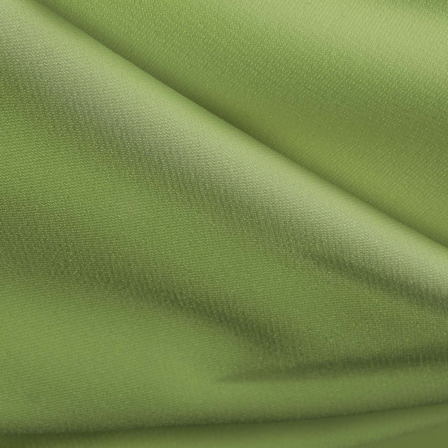 La tela base es el Punto Sintético con Spandex - Support en un color liso impreso en Verde Arena, que se compone de un 95% de poliéster y un 5% de elastano, lo que le proporciona una textura suave al tacto y alta elasticidad. El color impresionado se obtiene mediante la tecnología de sublimación con una combinación de tintas Cyan, Yellow y Black de una proporción del 35%, 68% y 0% respectivamente, lo que se refleja en el CMYK de 35 0 68 0. El Verde Arena representa un equilibrio entre lo natural y lo urbano, siendo un color versátil que combina bien con otros colores tierra y tonos cálidos como amarillos y naranjas.