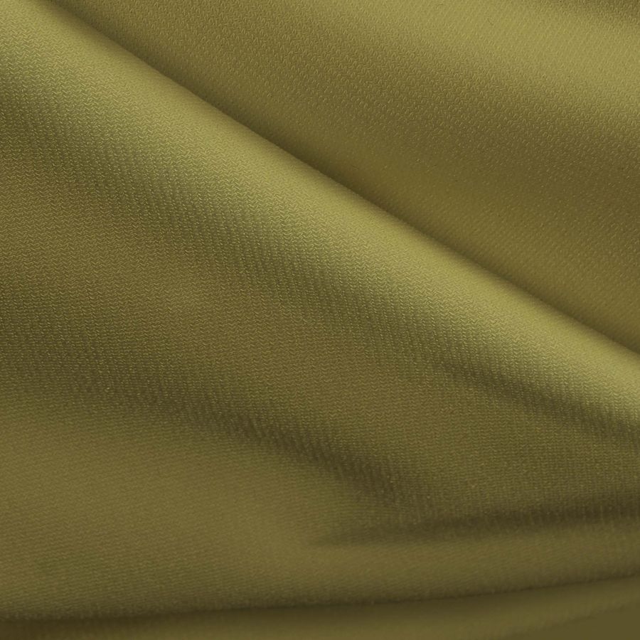 La tela base del tejido es Punto Sintético con Spandex - Support y su color liso impreso es un Verde Latón con CMYK 34 31 76 14. Este color es una mezcla de tonalidades cálido y refrescante, que encajan perfectamente en el contexto del diseño moderno y atemporal. Combina bien con colores neutros como beige y marrón, así como con tonos más oscuros como el azul marino y el negro.
