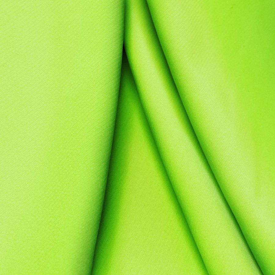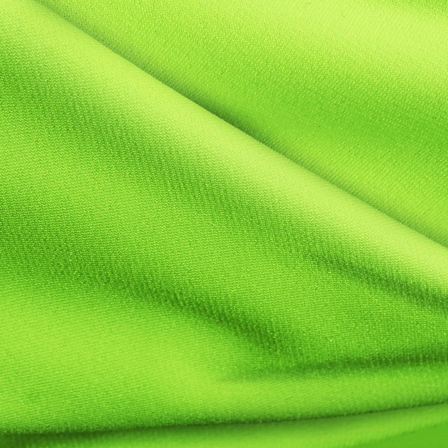 La tela base es el Punto Sintético con Spandex - Support, compuesta en un 95% de poliéster y un 5% de elastano, con un gramaje de 237 gr/m2 y un ancho de 152 cm. El color liso impreso en esta tela es Verde Lima, con un CMYK de 46 0 100 0. Es un color vibrante y fresco, que simboliza la naturaleza y la vitalidad. Combina muy bien con tonos neutros como el blanco, el beige y el gris, así como con otros tonos verdes, como el menta y el oliva. La tela está impresa con el color liso a una sola cara por impresión digital textil, lo que significa que el color se ha aplicado directamente en la superficie de la tela por medio de tecnología.