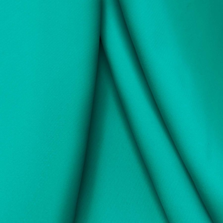 La tela base es el Punto Sintético con Spandex - Support, compuesta por 95% Poliéster y 5% Elastano, con un gramaje de 237 gr/m2 y un ancho de 152 cm. La aplicación de tinta ha otorgado un color liso impreso de Verde Azulado Medio, con un contenido de Cyan del 80, Magenta del 13, Yellow del 52 y Black del 1, siendo su CMYK de 80 13 52 1. Este color emula la vibración de la naturaleza y evoca la paz y la tranquilidad. En combinación, este color funciona bien con marrones cálidos, el blanco y neutros.