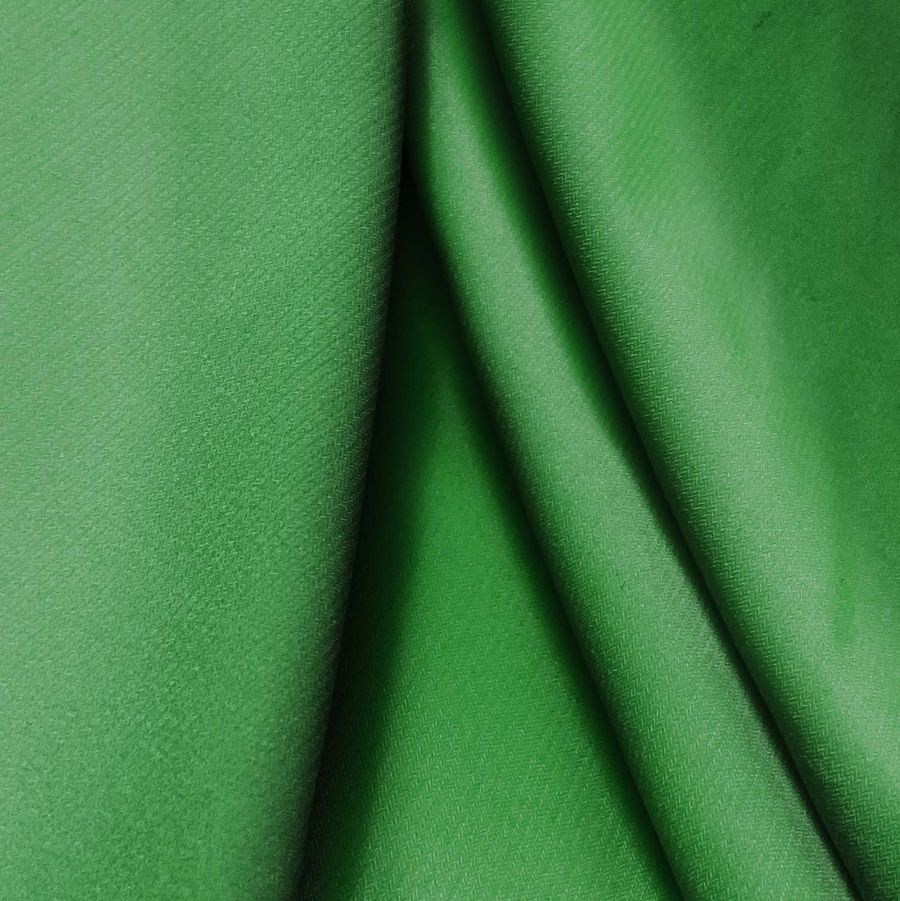 La tela base del tejido es Punto Sintético con Spandex - Support, compuesta en un 95% de poliéster y un 5% de elastano, con un gramaje de 237 gr/m2 y un ancho de 152 cm. El color liso impreso en la tela es Verde Billar, que se consigue con una tinta CMYK de 84 31 98 19. Este color evoca la frescura y la armonía, ya que combina el azul con el amarillo, y es ideal para prendas de moda y deportivas.