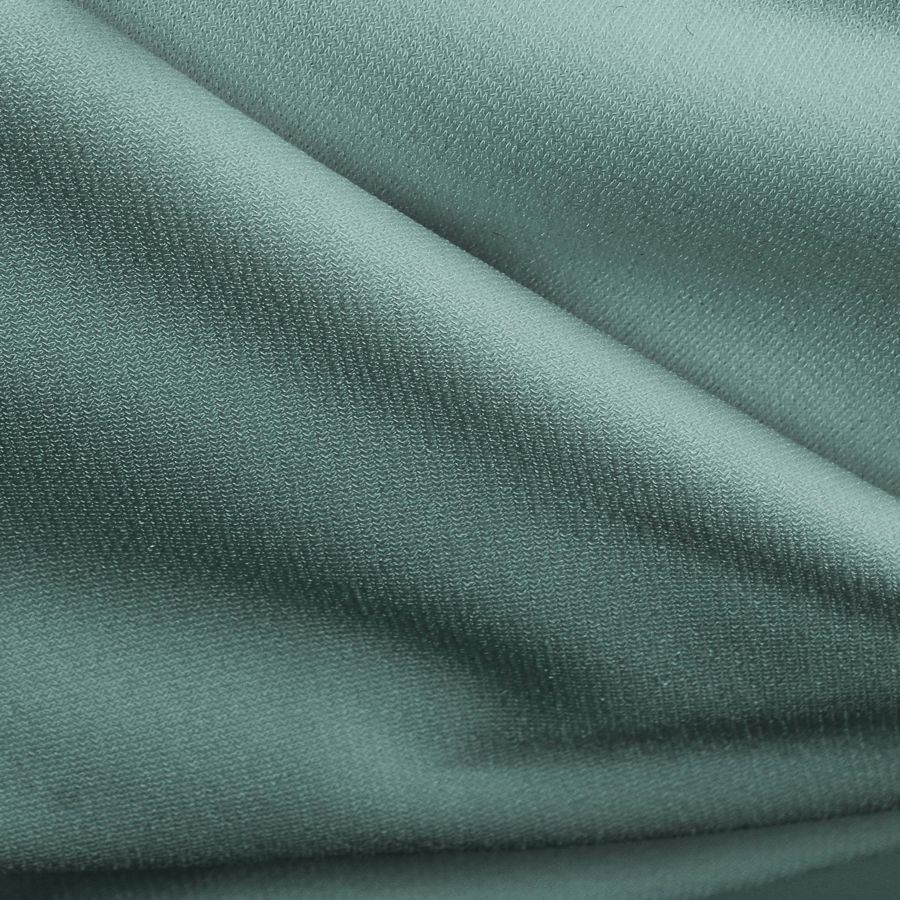 La tela base es el Punto Sintético con Spandex - Support, compuesta por 95% de poliéster y 5% de elastano, con un gramaje de 237 gr/m2 y un ancho de 152 cm. El color liso impreso en esta tela es de un tono Verde Ceniza, con un CMYK de 64 34 46 18. Este color transmite una sensación de frescura con un toque de elegancia, logrando un efecto tonal y vibrante. Este color se combina especialmente bien con tonos grises, azules y rosados suaves.