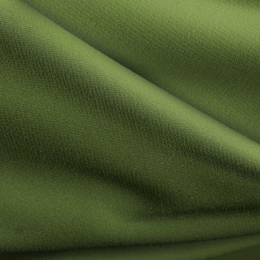 La tela base es el Punto Sintético con Spandex - Support, compuesta por 95% de poliéster y 5% de elastano, con un gramaje de 237 gr/m2 y un ancho de 152 cm. El color liso impreso es de un vibrante verde espinaca, con un CMYK de 70 42 100 37. Este color se destaca por su frescura y vitalidad, combinando perfectamente con tonos tierra, marrones cálidos, y negros y grises para un contraste audaz.