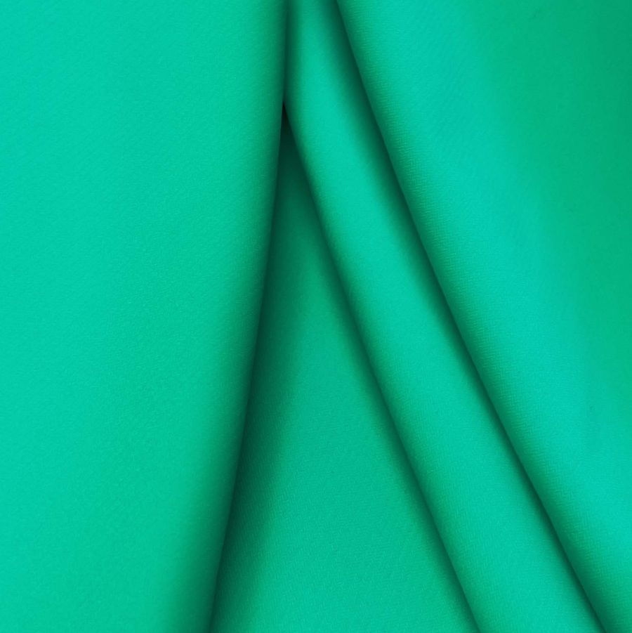 El tejido base de la tela es Punto Sintético con Spandex - Support, compuesta por un 95% de poliéster y 5% de elastano. Tiene un gramaje de 237 gr/m2 y un ancho de la tela de 152 cm. El color liso impreso es Verde Mar con un CMYK de 73 0 61 0. Este color tiene una tonalidad fresca y natural inspirada en el agua del mar. Es ideal para prendas de vestir tanto para hombres como para mujeres y combina perfectamente con tonos tierra y cremas.