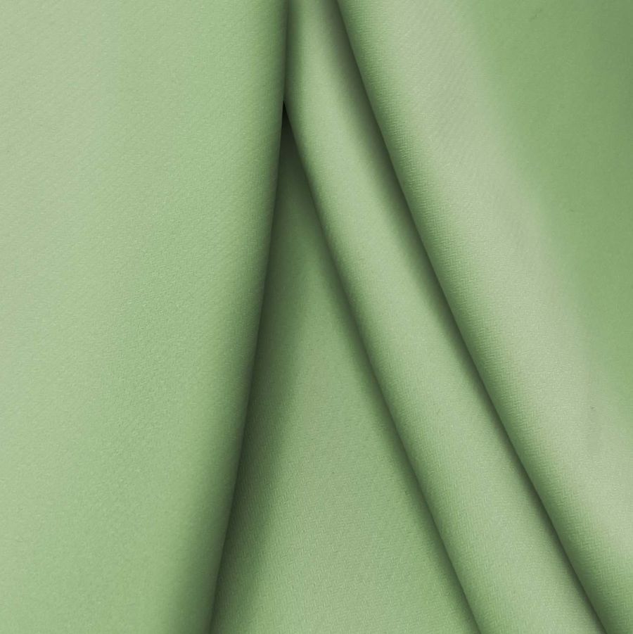 La tela base de este tejido es el Punto Sintético con Spandex - Support, una tela de punto suave, elástica y opaca compuesta por 95% poliéster y 5% elastano, con un gramaje de 237 gr/m2 y un ancho de 152 cm. El color liso impreso en esta tela es un verde pálido con CMYK de 53 17 63 2, lo que indica que está compuesto principalmente por cian y amarillo con un toque de magenta y negro. Este color transmite tranquilidad, calma y frescura, y combina especialmente bien con tonos tierra, grises, blancos y tonos pastel.