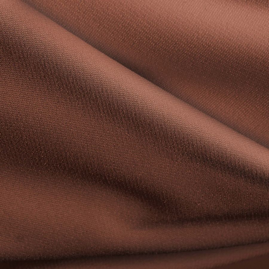 La tela base, Punto Sintético con Spandex - Support, tiene una composición de 95% poliéster y 5% elastano, un gramaje de 237 gr/m2 y un ancho de 152 cm. Su color liso impreso tiene un CMYK de 36 71 75 50, lo que resulta en un tono rojo-rojo marrón intenso. El color secundario complementario es verde, ya que su opuesto en la rueda de colores es el rojo.