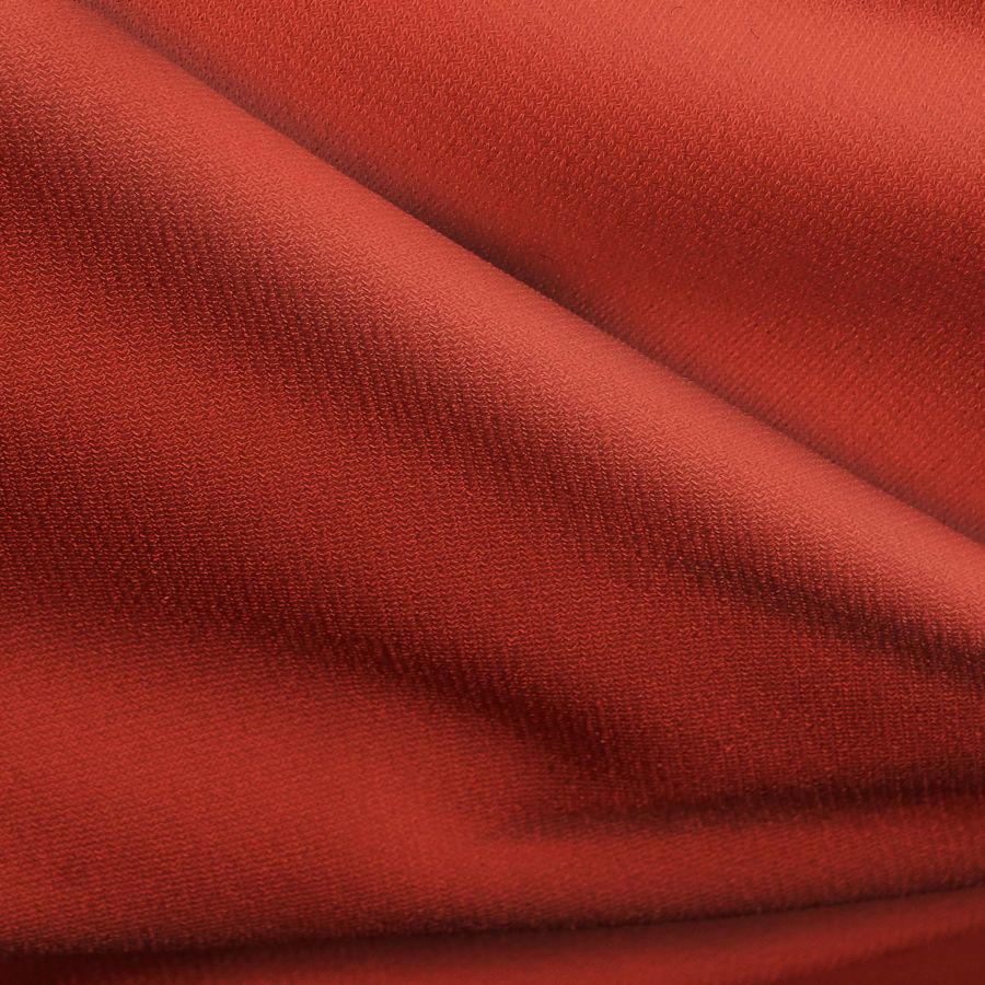 La tela base es el Punto Sintético con Spandex - Support, compuesta por un 95% de poliéster y un 5% de elastano, con un gramaje de 237 gr/m2 y un ancho de 152 cm. El color liso impreso sobre la tela es un rojo tomate que contiene 24 de tinta cyan, 96 de tinta magenta, 100 de tinta yellow y 21 de tinta black, formando un CMYK de 24 96 100 21. Este color transmite energía y pasión, perfecto para prendas llamativas.