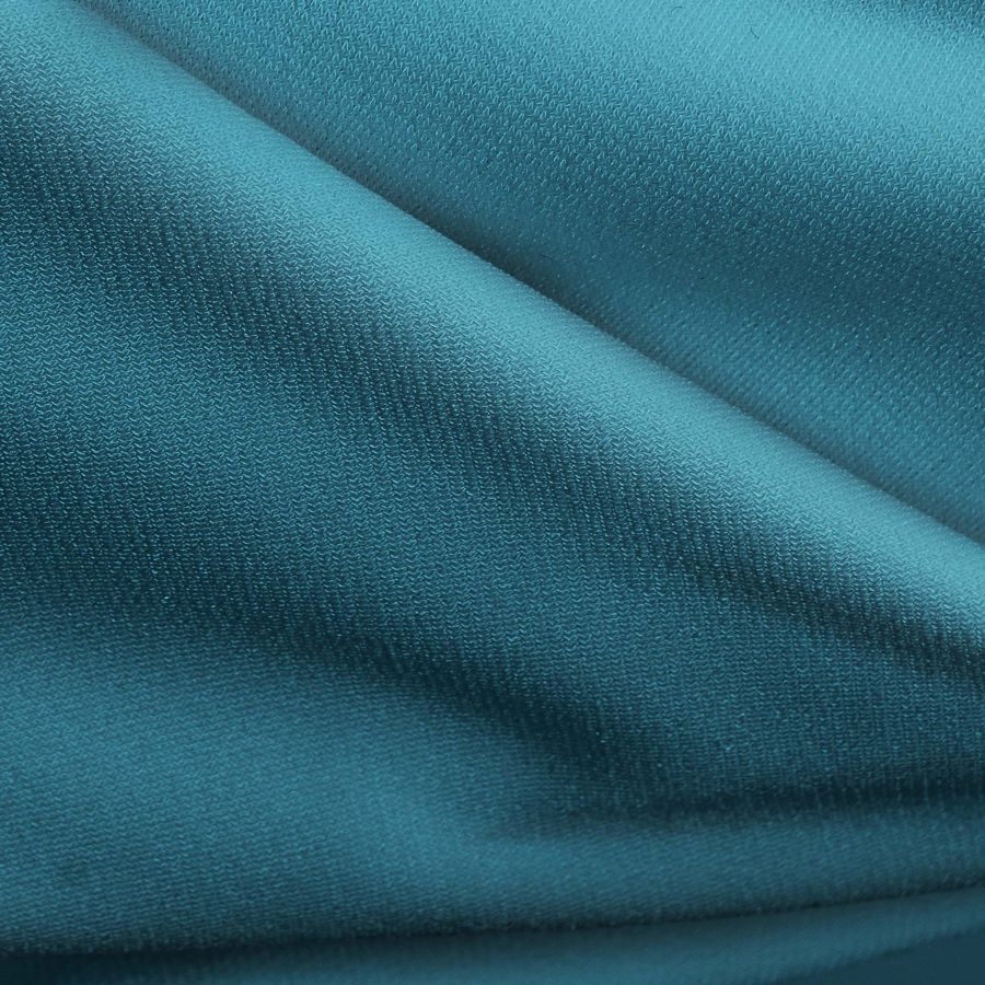 La tela base es Punto Sintético con Spandex - Support en tono liso Azul Agua, con un CMYK de 82 39 37 21. El color se puede describir como fresco, cristalino y suave, evocando la inmensidad y tranquilidad del mar. Combina perfectamente con tonos similares como el turquesa o el verde agua, pero también con colores neutros como el blanco o el beige.