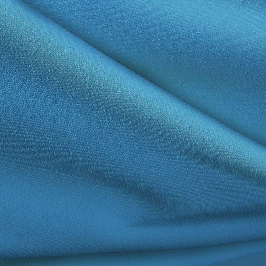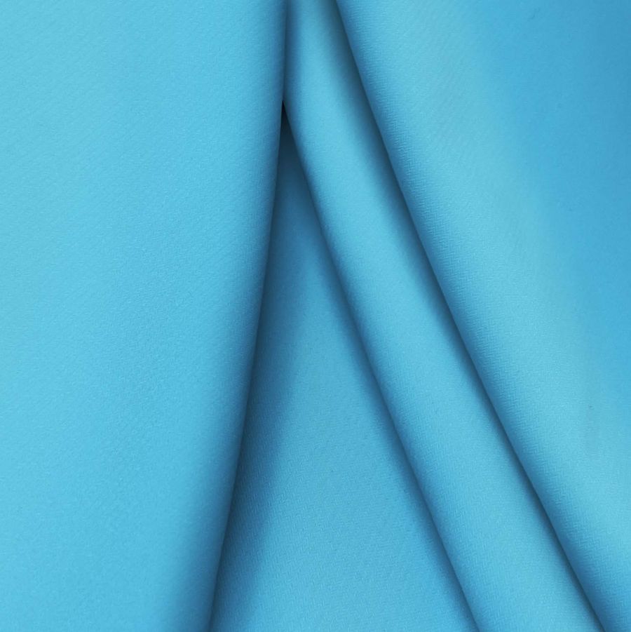 La tela base es Punto Sintético con Spandex - Support en tono liso Azul Bebé, con un CMYK de 64 15 0 0. Este color representa un tono claro y delicado, el cual simboliza tranquilidad, seguridad y armonía. Combinando bien con tonos más cálidos como el rosa claro o el blanco marfil. Esta tela está impresa a una sola cara por impresión digital textil.