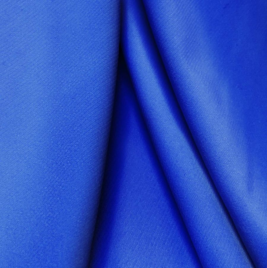 La tela base es el Punto Sintético con Spandex - Support, con una composición de 95% poliéster y 5% elastano, con un gramaje de 237 gr/m2 y un ancho de 152 cm. El color liso impreso es el Azul Iris, con un CMYK de 95 77 0 0, lo que le da un tono azul claro y brillante. Este color se combina bien con tonos neutros y tierra, así como con tonos más oscuros de azul y morado.