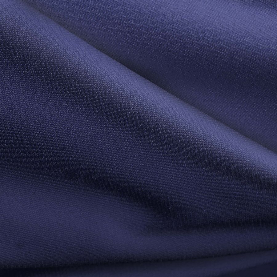 La tela base, Punto Sintético con Spandex - Support, tiene una composición de 95% poliéster y 5% elastano, con un gramaje de 237 gr/m2 y una anchura de 152 cm. El color liso impreso de esta tela es Azul Nocturno, con un CMYK de 98 90 36 36. Este color es profundo y opaco, con una textura suave y un tacto elástico. El Azul Nocturno combina bien con los tonos tierra y ocres, creando una paleta cromática cálida y acogedora.
