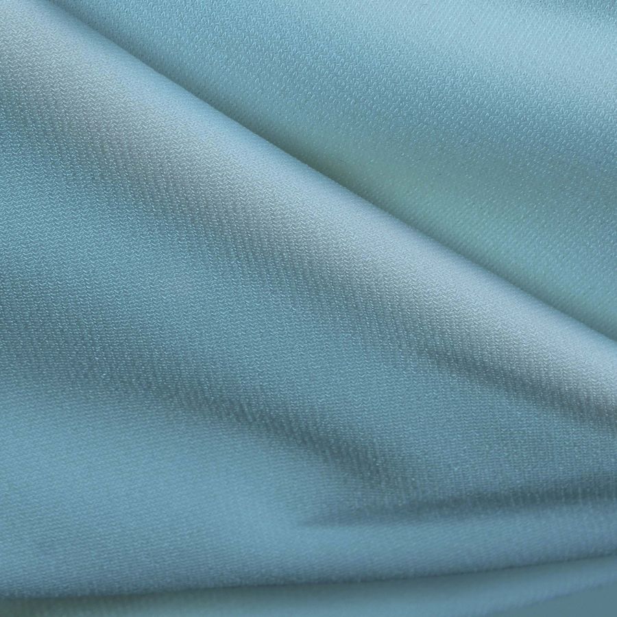 La tela Punto Sintético con Spandex - Support es una tela de punto compuesta por 95% de poliéster y 5% de elastano, con un gramaje de 237 gr/m2 y un ancho de 152 cm. El color liso impreso es un tono azul pálido que se logra mediante la combinación de las tintas cian (37) y amarillo (2), sin el uso de tinta magenta ni negra. Este color se caracteriza por su suavidad y opacidad, y combina especialmente bien con tonalidades pálidas y neutras.