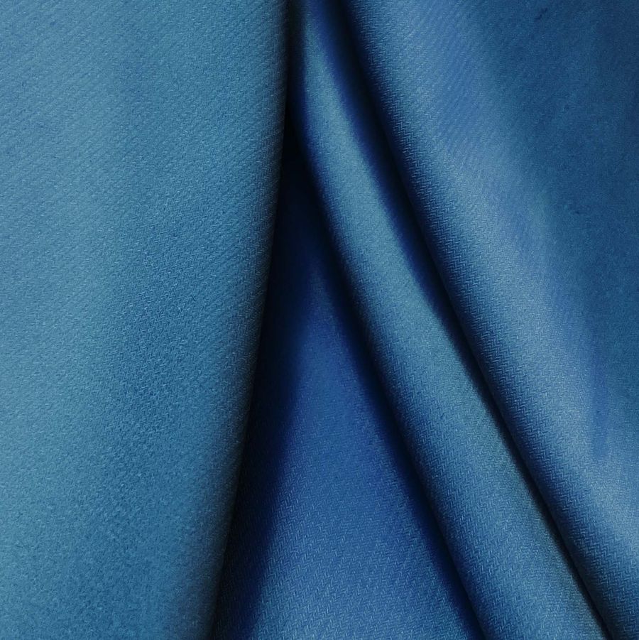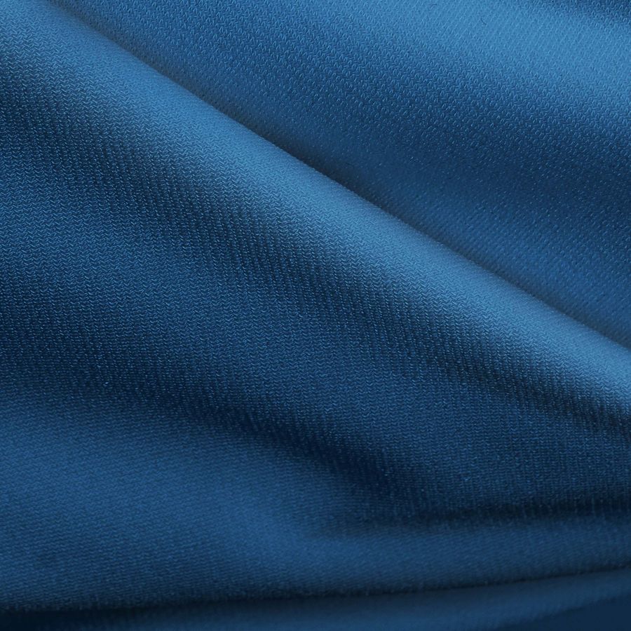 La tela base es el Punto Sintético con Spandex - Support, con una composición del 95% de poliéster y 5% de elastano. El color liso impreso es un intenso tono azul seda, obtenido mediante la tecnología de sublimación y con un CMYK de 98 71 31 17. Este color se caracteriza por transmitir serenidad y tranquilidad, aportando calma y estabilidad. Combina perfectamente con colores como el blanco, el gris claro o el rosa pastel.