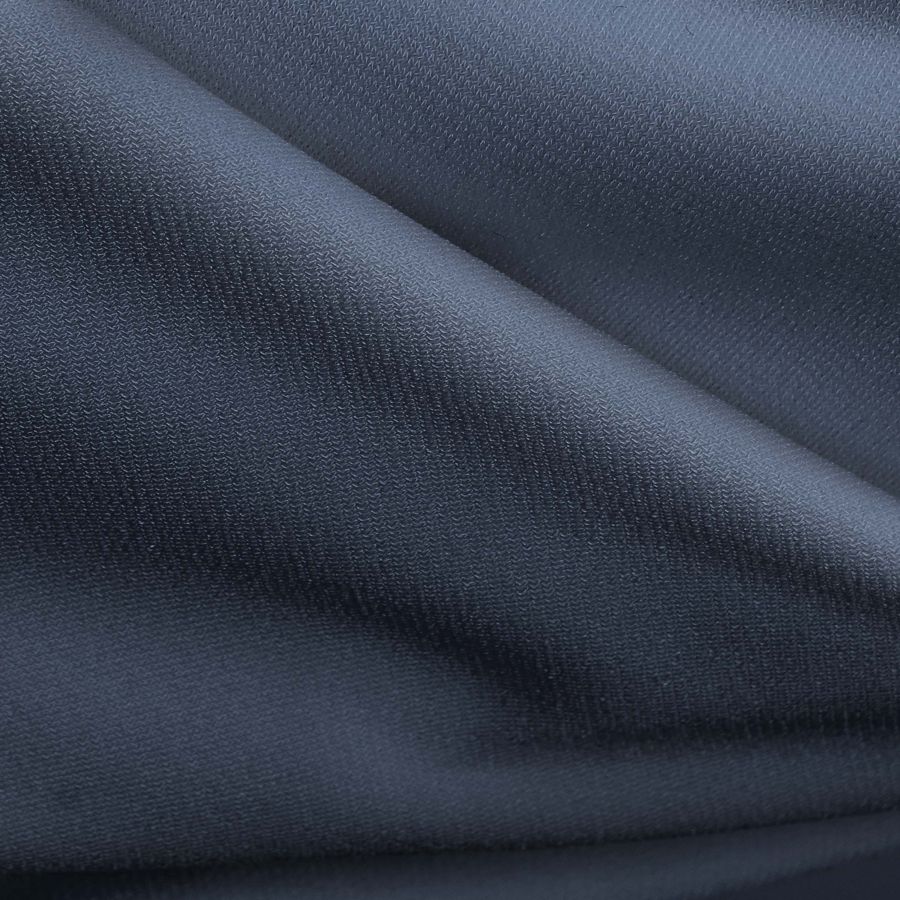 La tela base es Punto Sintético con Spandex - Support, con un gramaje de 237 gr/m2 y una composición de 95% Poliéster y 5% Elastano, lo que le proporciona una textura suave, visual opaca y elástica. El color liso impreso es un azul denim oscuro, con un CMYK de 82 66 44 42. Este color es profundo y evoca una sensación de estabilidad y confianza. Combina particularmente bien con tonos neutros como el blanco, el gris y el beige. Además, la tela está impresa a una sola cara por impresión digital textil.