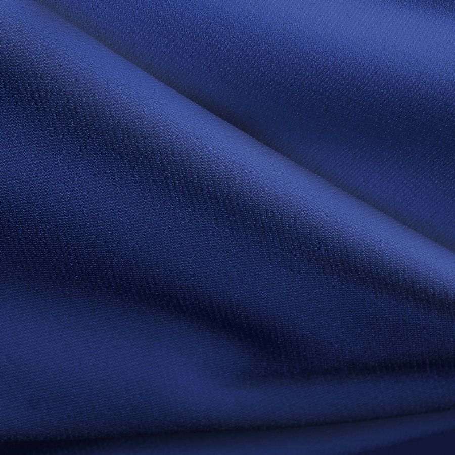 La tela base, Punto Sintético con Spandex - Support, presenta una composición de 95% poliéster y 5% elastano, con un gramaje de 237 gr/m2 y un ancho de 152 cm. El color liso impreso presenta un CMYK de 100 91 35 22, reflejando la tonalidad de una mezcla entre azul y turquesa. Este color se caracteriza por ser fresco y versátil, ideal para la moda femenina y juvenil. Combina muy bien con tonalidades blancas, grises claros y tonalidades beige, creando así un conjunto de colores armoniosos y equilibrados.