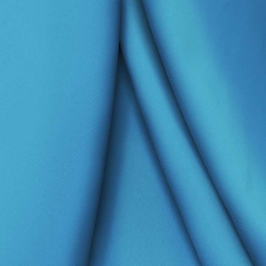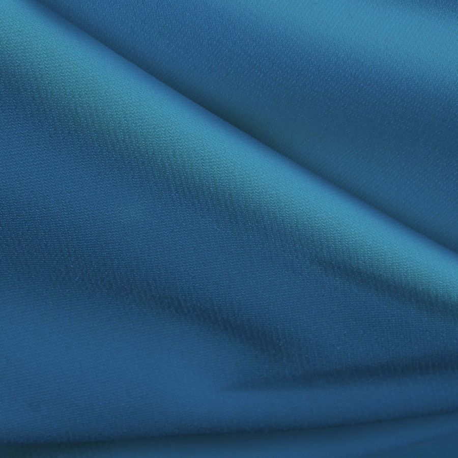 La tela base es el Punto Sintético con Spandex - Support de composición 95% poliéster y 5% elastano con un gramaje de 237 gr/m2 y ancho de 152cm. El color impreso es Azul Virgen con un CMYK de 77 40 6 0. Este tono es simbólico de la tranquilidad y la serenidad que proporciona el color azul. Combinado con el blanco o el negro puede crear un aspecto elegante y sofisticado, mientras que con el naranja o amarillo puede transmitir una sensación de energía y vitalidad. El tejido está impreso con el color liso a una sola cara por impresión digital textil.