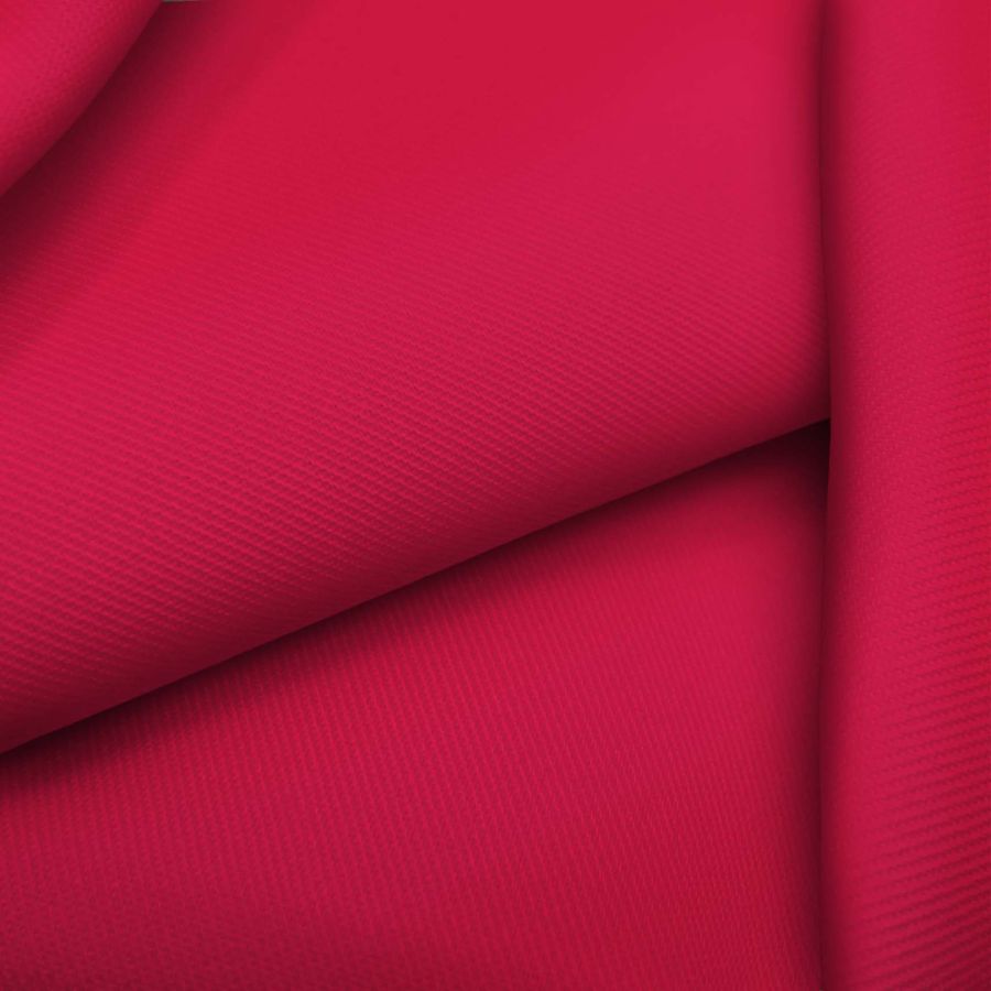 La tela base de esta prenda es la Sarga - Prada, compuesta por un 96% de poliéster y un 4% de elastano, con un gramaje de 220 gr/m2 y un ancho de 150 cm. El color liso impreso es rojo amaranto, con un CMYK de 8 98 64 2. Este color secundario es un tono intenso y profundo, con una mezcla de rojo y morado que transmite elegancia y sofisticación. Combina perfectamente con tonos neutros como el blanco, negro y gris, así como con colores más brillantes como el dorado y el rosa.