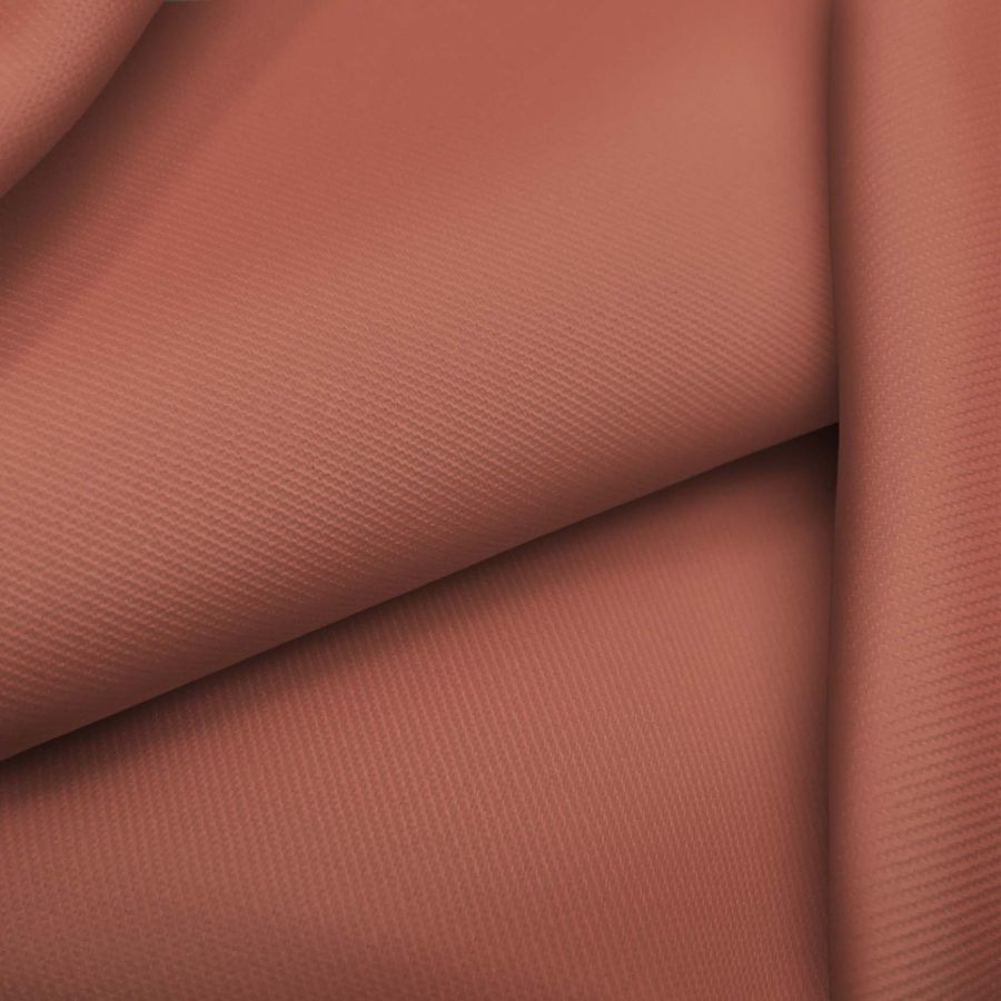 La tela base de este tejido es la Sarga - Prada, compuesta por un 96% de poliéster y un 4% de elastano, con un gramaje de 220 gr/m2 y un ancho de 150 cm. El color liso impreso es Rojo Cobre, con una combinación CMYK de 24 67 63 14. Es destacable la presencia de Cobre en el color, un matiz terroso que aporta profundidad y elegancia. Este color combina especialmente bien con tonos verdes y azules turquesa, entre otros. El tejido está impreso con el color liso a una sola cara por impresión digital textil, lo que permite una alta definición y fidelidad de los diseños.