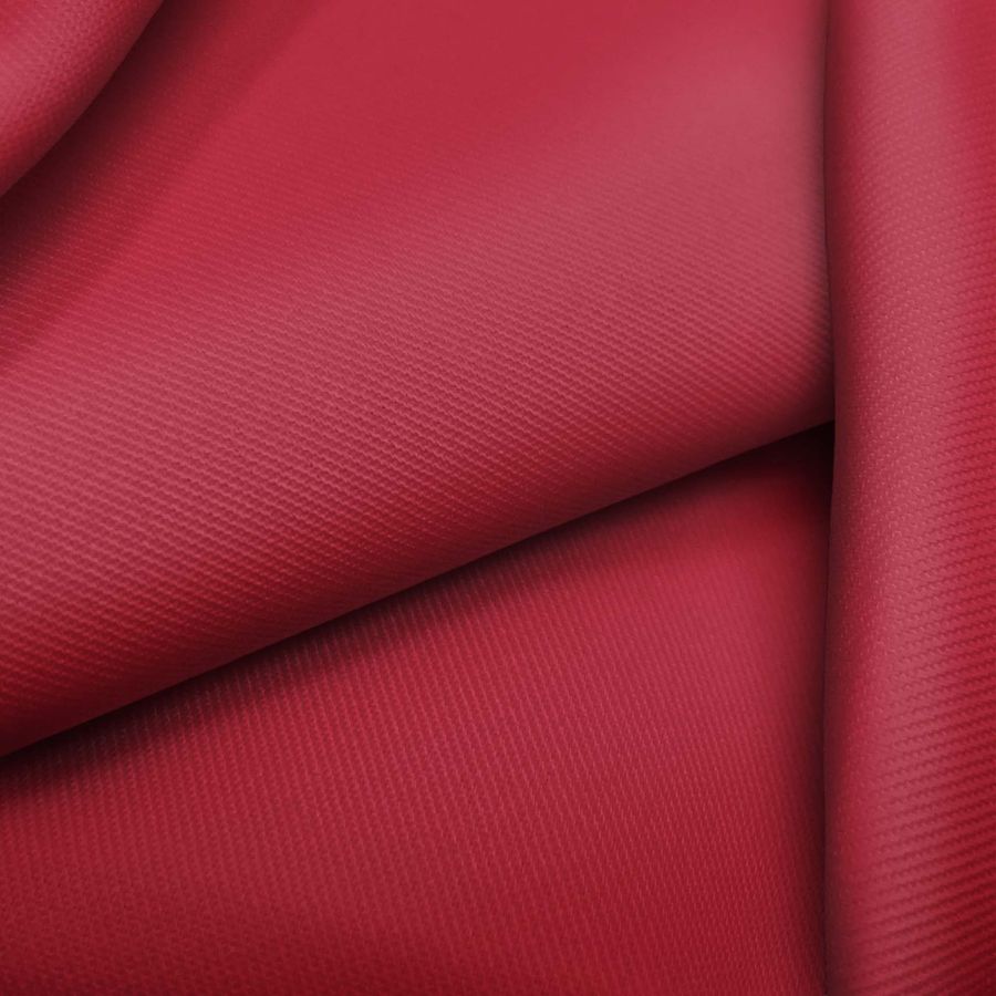 La tela base es una sarga de poliéster y elastano con un gramaje de 220 gr/m2 y una anchura de 150 cm. El color liso impreso es un vibrante rojo escarlata, con una tinta cyan del 24%, una tinta magenta del 98%, una tinta yellow del 73% y una tinta black del 20%, es decir, un CMYK de 24 98 73 20. Este color secundario es muy característico por su intensidad y profundidad, lo que lo hace ideal para crear prendas y accesorios que quieran llamar la atención. Además, combina perfectamente con tonos neutros como el blanco y el negro, así como con otros colores intensos como el azul oscuro o el verde.