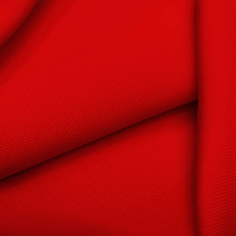 La tela base es una sarga Prada compuesta por 96% poliéster y 4% elastano, con un gramaje de 220 gr/m2 y un ancho de 150 cm. El color liso impreso es rojo pigmento con los siguientes valores en CMYK: 3 100 100 1. Este color evoca la pasión y el amor, y se combina bien con tonos neutros como el gris y el blanco, así como con colores vivos como el amarillo y el naranja.