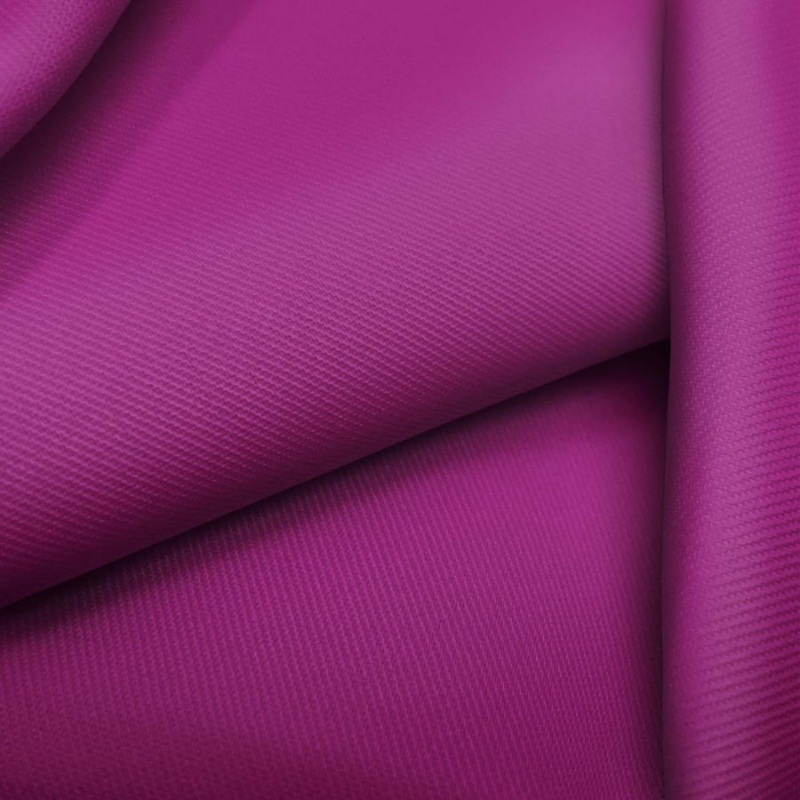 La tela base es la Sarga-Prada, compuesta por un 96% de poliéster y un 4% de elastano, con un gramaje de 220 gr/m2 y un ancho de 150 cm. El color liso impreso es Rojo Púrpura y su CMYK es de 50 100 18 9. Este color secundario destaca por su fuerte personalidad, simboliza la pasión, el romanticismo, la distinción y el misterio. Es un color que combina muy bien con tonos oscuros, dando una sensación de elegancia y sofisticación. Además puede combinarse con tonos amarillos, dorados y cobrizos para crear contrastes interesantes. Cabe destacar que el tejido está impreso a una sola cara por impresión digital textil. La tela tiene una textura suave y delgada, ideal para la confección de prendas de moda femenina o masculina, como camisas, faldas, blusas, vestidos y pañuelos. Es una tela ideal para la temporada de verano por su frescura y transpirabilidad. Respecto a los cuidados de la tela, se recomienda no utilizar blanqueadores y lavar a temperatura máxima de 30ºC, admite limpieza en seco salvo tricloroetileno, planchar a temperatura fría y no se puede secar con secadora. La tecnología de impresión utilizada para fabricar este tejido es la sublimación de poliéster, una técnica que permite transferir la tinta directamente en el tejido base, sin que se altere la suavidad y el brillo del tejido.