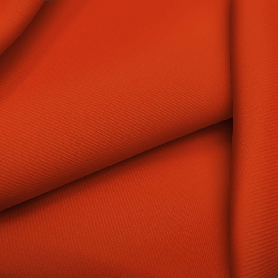 La tela base Sarga - Prada es un tipo de sarga compuesta por un 96% de poliéster y un 4% de elastano, con un gramaje de 220 gr/m2 y un ancho de 150 cm. Su color liso impreso es un rojo ladrillo con un CMYK de 9 90 100 1, lo que indica mayor presencia de magenta y amarillo en la mezcla de tinta. Este color secundario se asemeja al color del ladrillo, evocando sensaciones de calidez y estabilidad. Combina bien con colores naturales como beige y marrón, así como con colores más intensos como naranja oscuro y verde oliva.