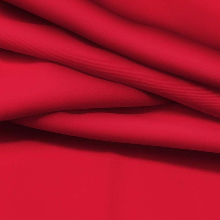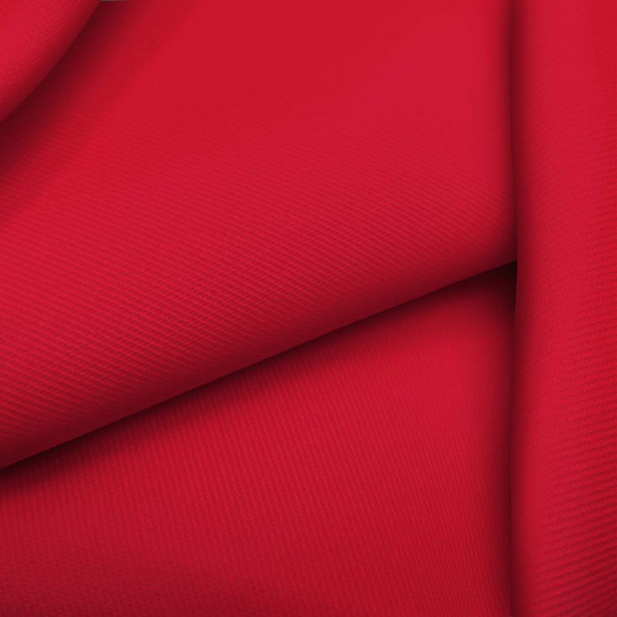 La tela base, Sarga - Prada, es una sarga con composición de poliéster y elastano, de 220 gr/m2 y ancho de 150 cm. El color liso impreso es Rojo Sandía con un CMYK de 7 99 81 1, generando una tonalidad profunda de alta saturación y contraste. Este color secundario transmite pasión, energía y vitalidad, relacionado con la fuerza de la naturaleza y el fuego. La combinación de su tonalidad cálida con detalles dorados o plateados produce un aspecto elegante y sofisticado. Esta tela está impresa a una sola cara por impresión digital textil, creando una capa de pigmentos que se fusiona con las fibras del tejido.