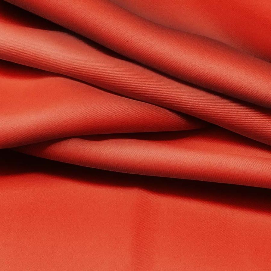 Sarga - Prada es una tela de sarga, compuesta por un 96% de poliéster y un 4% de elastano, con un gramaje de 220 gr/m2 y un ancho de 150 cm. Su color liso impreso es Naranja Lava, con un CMYK de 13 94 100 3. Este color secundario posee una simbología fuerte y cautivadora, siendo una combinación entre la enérgica vitalidad del naranja y la pasión explosiva del rojo. Además, esta tonalidad puede considerarse versátil ya que combina perfectamente con tonos marrones, beige y amarillos, así como también, con tonos más fríos como el gris, el azul petróleo y el turquesa. Es importante destacar que este tejido está impreso con el color liso a una sola cara por impresión digital textil, lo que le otorga un extra de durabilidad.