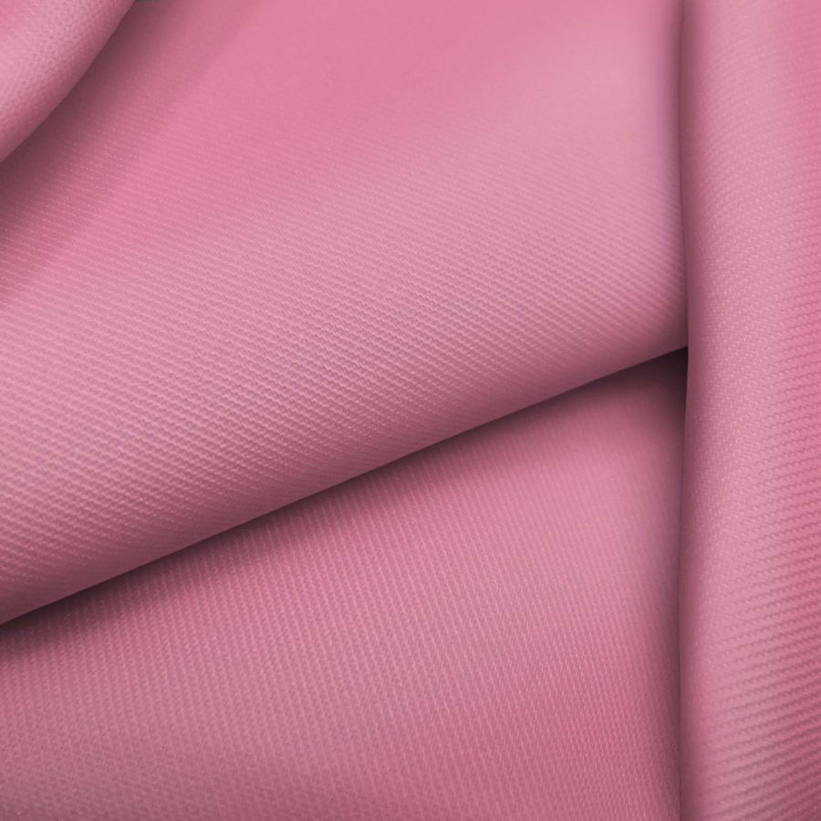 La tela base es la Sarga - Prada, compuesta por 96% poliéster y 4% elastano, con un gramaje de 220 gr/m2 y un ancho de 150 cm. El color liso impreso es rosa esmalte de uñas, que se obtiene con una tinta magenta de 61 y una tinta yellow de 14, sin tinta cyan ni black. Este color es vibrante, fresco y juvenil, evocando un aire de la moda más actual. Es un color secundario que combina bien con tonos neutros como el blanco, el gris o el beige, además de con tonos complementarios como el verde o el azul. La tela está impresa en una sola cara por impresión digital textil.