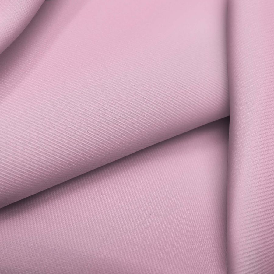 La tela base de esta prenda es la Sarga-Prada, una tela suave y delgada de composición 96% poliéster y 4% elastano con un gramaje de 220 gr/m2 y un ancho de 150 cm. El color liso impreso es rosa algodón azucarado, representado en la CMYK por 0 37 0 0. Este color secundario evoca sentimientos de dulzura, ternura y romanticismo, se combina perfectamente con tonalidades blancas, beiges y rosas claros. Es importante resaltar que el tejido está impreso con este color liso solo por una cara utilizando impresión digital textil.