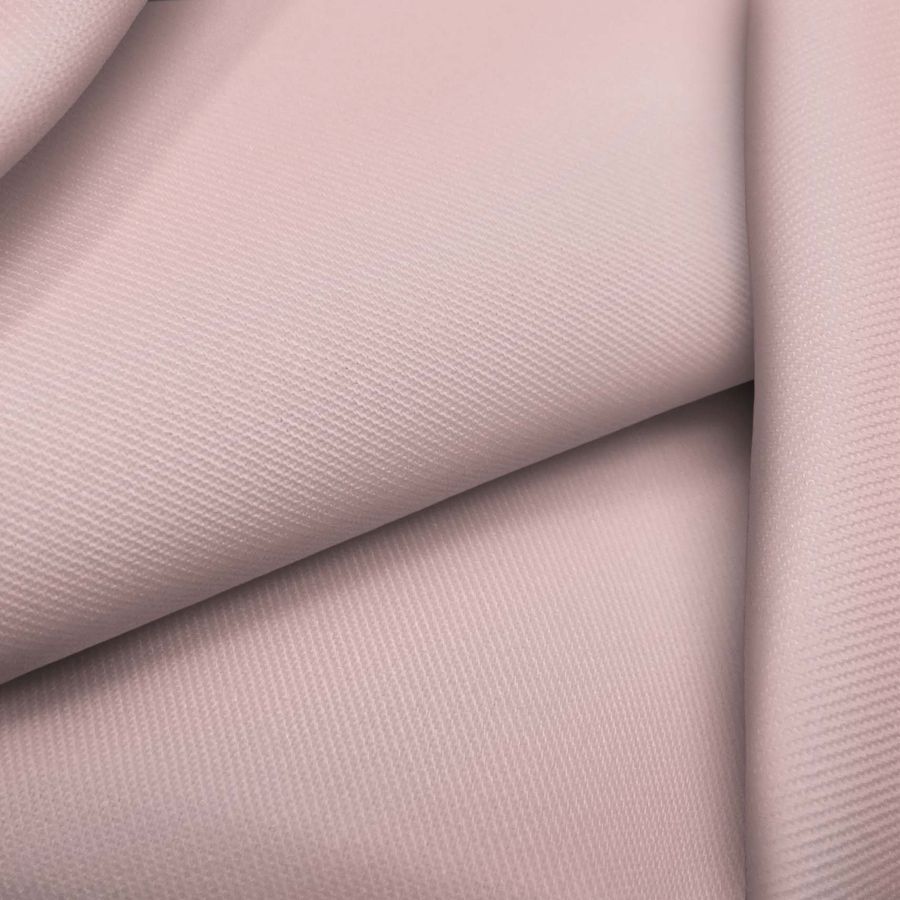 La tela base es una sarga de poliéster-elastano llamada Sarga-Prada de 220 gr/m2 y 150 cm de ancho, con un color liso impreso en rosa cuarzo con un CMYK de 1 28 16 0. Este color es suave y delicado, brindando una sensación de tranquilidad y dulzura. Combina bien con tonos pastel como el azul claro o el amarillo pálido, así como con tonos similares al rosa, como el fucsia o el magenta. Cabe destacar que la tela está impresa a una sola cara por impresión digital textil.