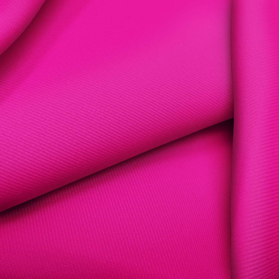 La tela base de este tejido es Sarga - Prada, compuesta en un 96% por POLIÉSTER y un 4% de ELASTANO, con un gramaje de 220 gr/m2 y un ancho de 150 cm. El color liso impreso es Rosa-Magenta Estándar, con un CMYK de 0 94 0 0. Este color simboliza la pasión, el amor y la creatividad, mientras que técnicamente es un tono vivo y saturado que combina muy bien con tonos fríos como el azul o el verde.