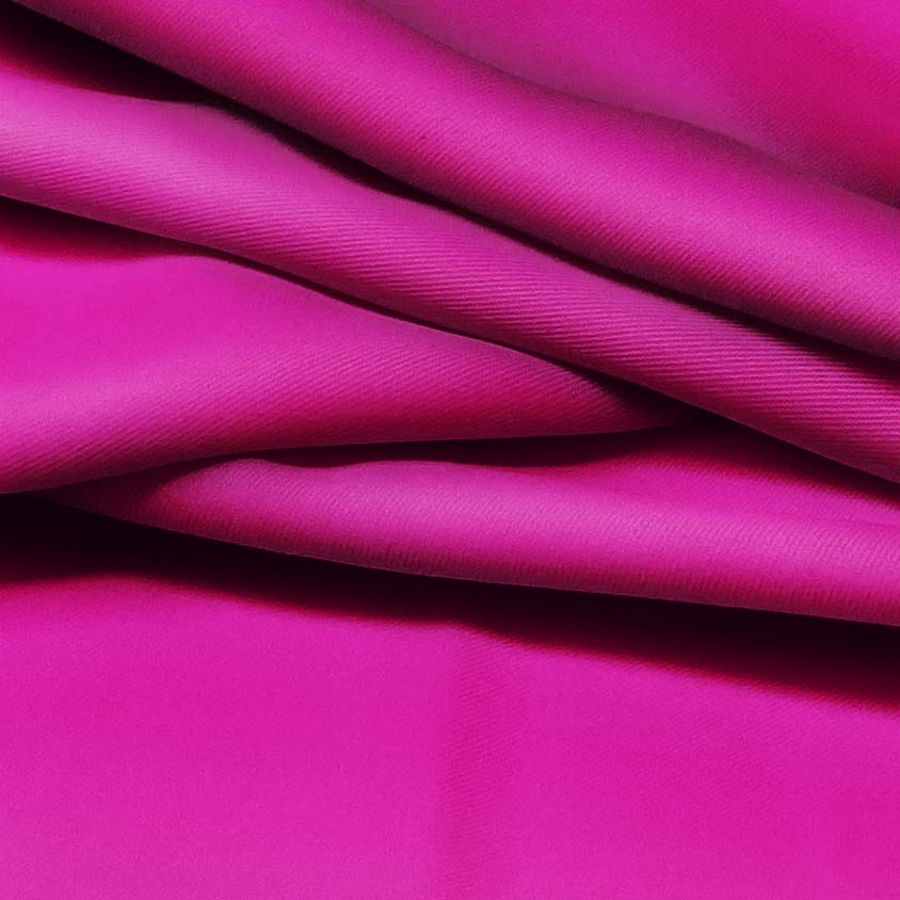 El tejido base es Sarga - Prada, compuesta por 96% poliéster y 4% elastano, con un gramaje de 220 gr/m2 y un ancho de 150 cm. El color liso impreso es Rosa Orceína, con un CMYK de 22 100 12 3. Este tono rosa vibrante y alegre se combina perfectamente con colores como el blanco, el negro y el gris, creando un efecto contemporáneo y llamativo. Es importante destacar que el tejido está impreso con el color liso a una sola cara por impresión digital textil.