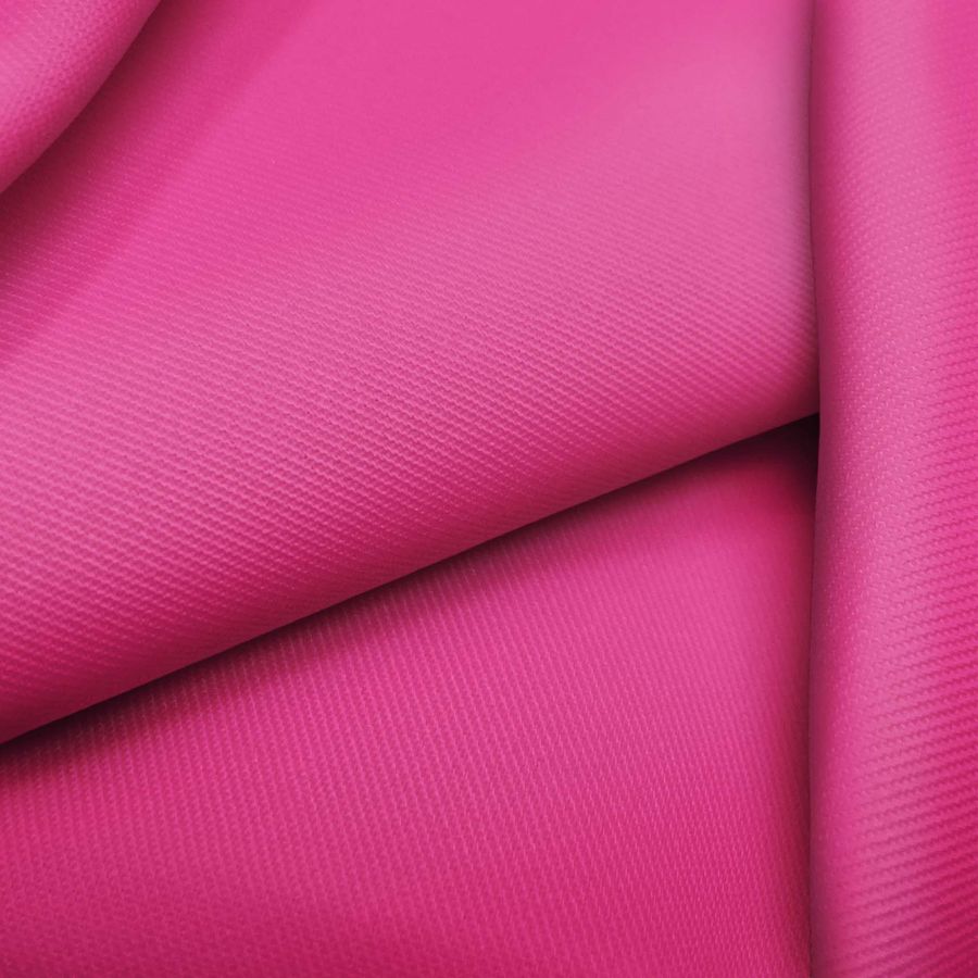 La tela base es una sarga Prada compuesta por un 96% de poliéster y un 4% de elastano, el gramaje es de 220 gr/m2 y tiene un ancho de 150 cm. El color liso impreso es Rosa Cerise, con una tinta magenta del 87%, una tinta amarilla del 12% y sin tinta cian ni negra, lo que nos da como resultado un tono rosa intenso. El color Cerise se asocia con lo femenino, la sensualidad y la pasión. En combinación con colores como el blanco, gris claro o negro, crea un efecto elegante y sofisticado.