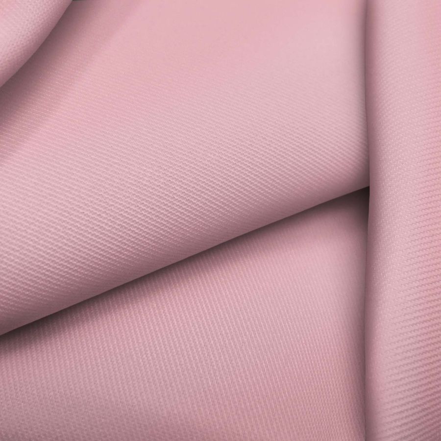 La tela base es de tipo sarga y se llama Sarga-Prada, compuesta por un 96% de poliéster y un 4% de elastano, con un gramaje de 220 gr/m2 y un ancho de 150 cm. El color liso impreso en la tela es un rosa claro, con una mezcla CMYK de 0 39 13 0, lo que lo hace un tono suave y romántico. Este color secundario es perfectamente combinable con colores como el blanco, negro, gris o beige para lograr un look sofisticado y equilibrado. El tejido está impreso con el color liso a una sola cara por impresión digital textil, lo que le confiere una gran calidad y resolución de imagen.